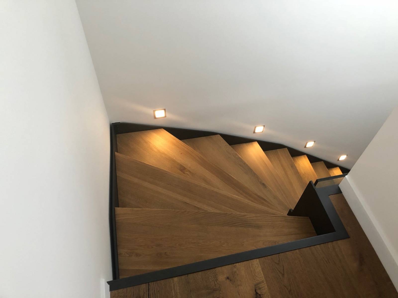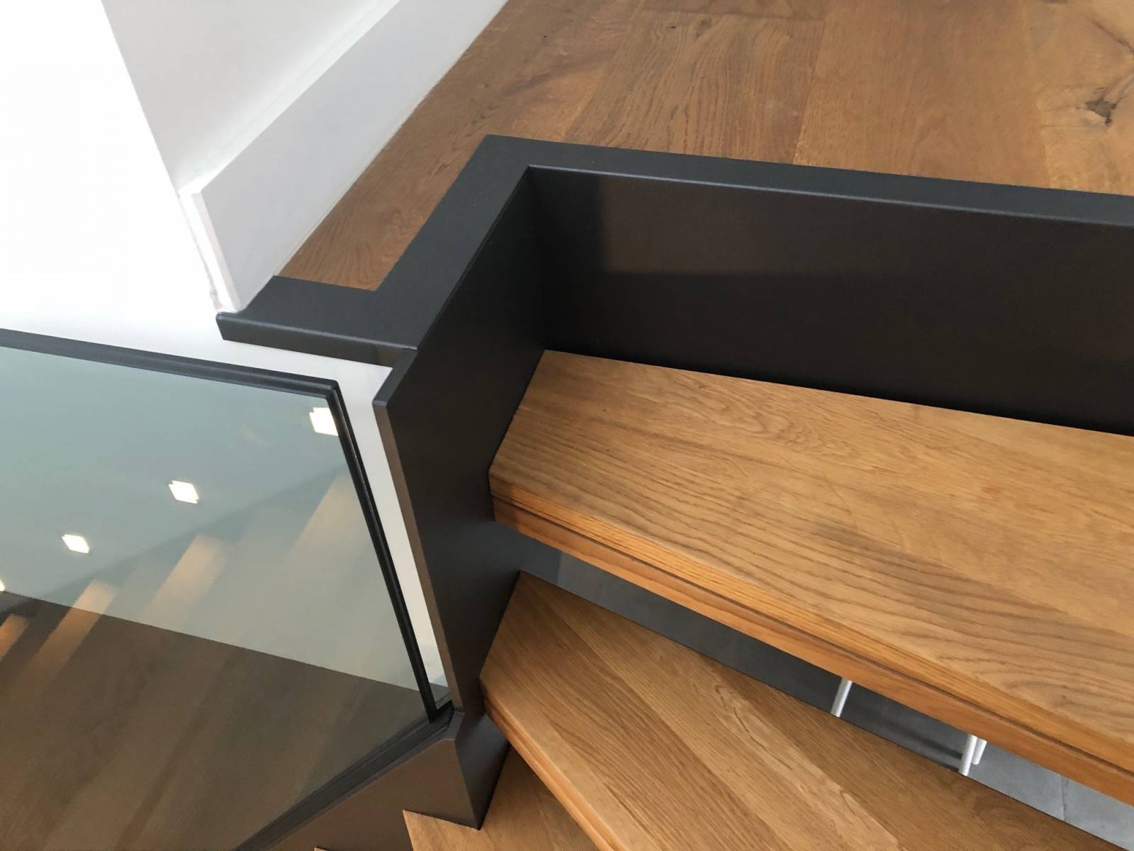 l'ensemble des parties métallique sont peinte en epoxy RAL noir Textura . Pour traiter les marche chêne massif , nous appliquons une huile de type rubio