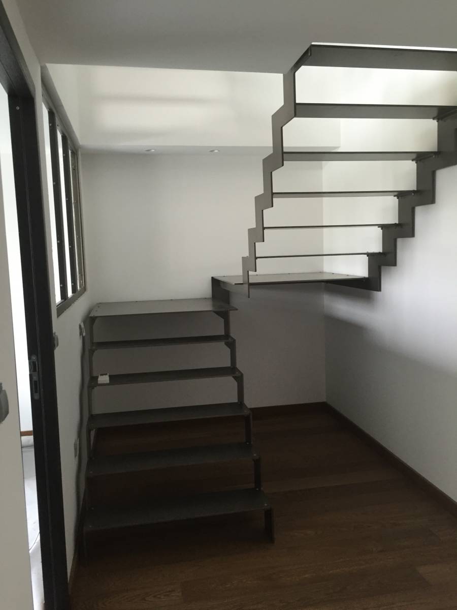 Lyon Métal, situé en région Lyonnaise et spécialiste de la conception et la fabrication d'objets métalliques sur mesure a conçu ce magnifique escalier 2/4 tournant tout acier avec garde corps en verre .