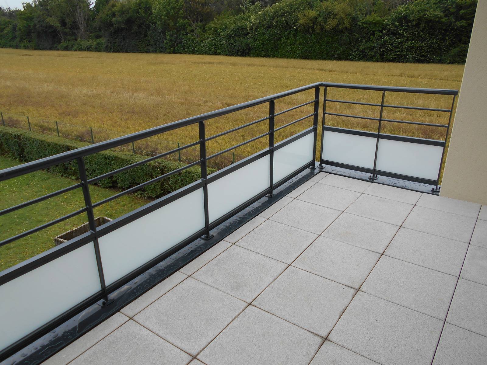 garde corps acier avec soubassement en verre feuilleter opale type 44/2 .