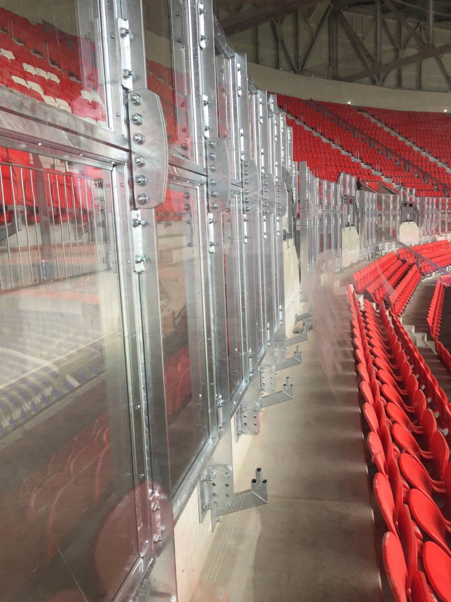 le but étant de crée un garde corps hauteur 2 m pour OLYMPIQUE LYONNAIS situé au secteur visiteur du groupama stadium à decines répondant au contrainte demandé: 300kg/m de poussé pour les gardes corps .