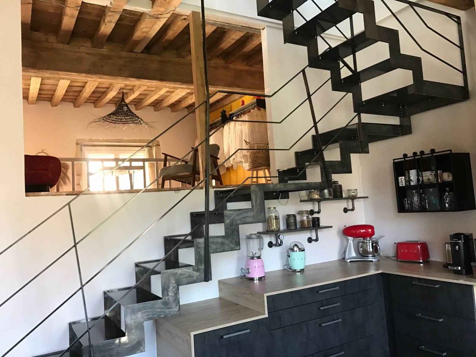 Lyon Métal, situé en région Lyonnaise et spécialiste de la conception et la fabrication d'objets métalliques sur mesure a conçu ce magnifique escalier avec garde corps en verre et marche bois