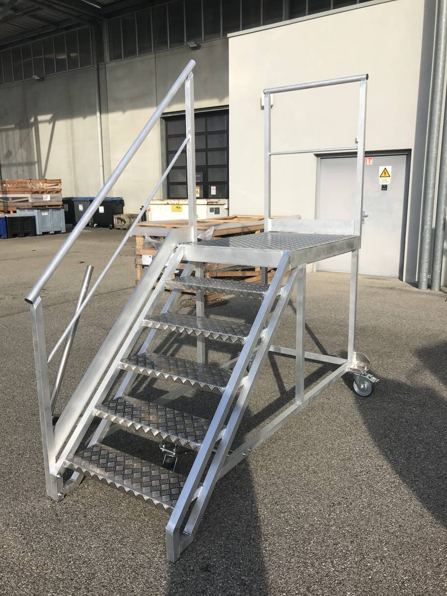 Passerelle aluminium , sur roulette avec pivot de blocage en inox .
