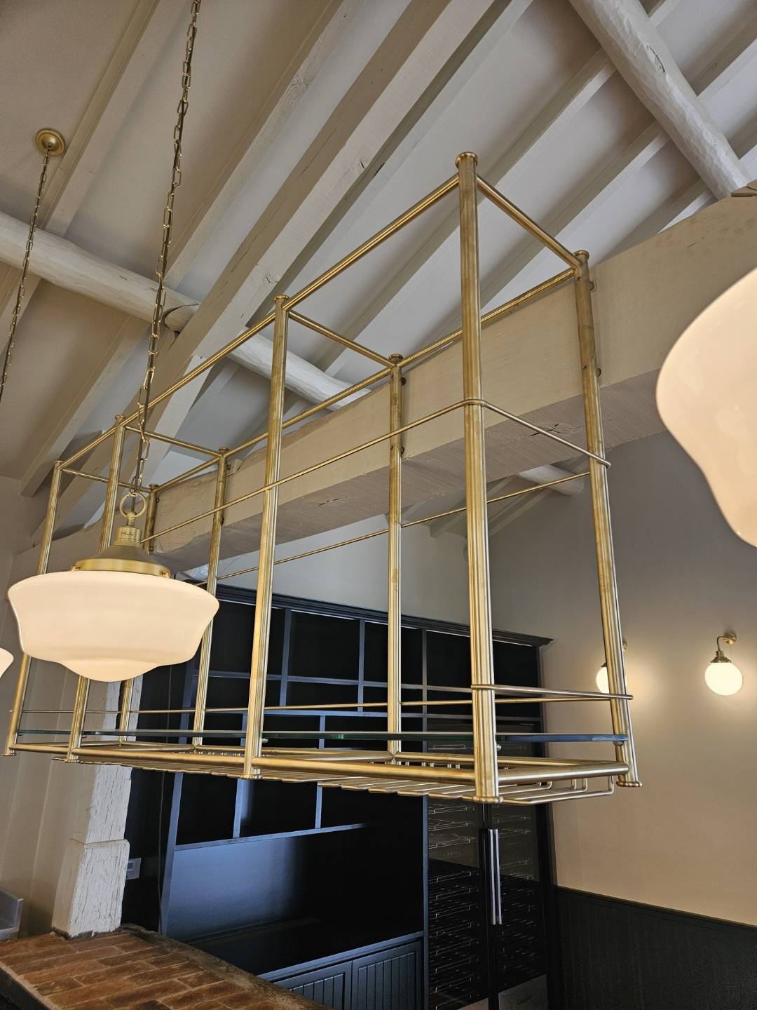 Pour ce projet exceptionnel, nous avons réalisé à la demande de MPE Création Bois, un magnifique ciel de bar en laiton pour le restaurant du Golf De La Bresse.