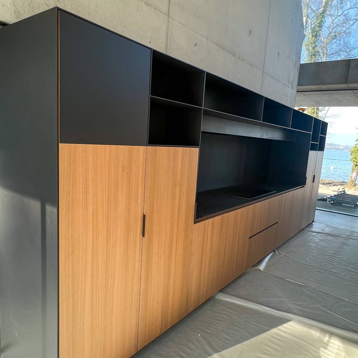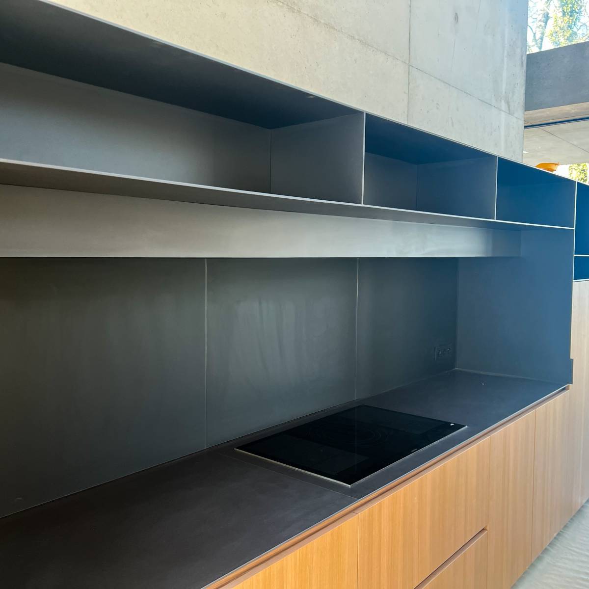 pour agrémenter cette cuisine derrière l'ilot des caissons en tôle thermolaqué ép. 6mm on été fabriqué.