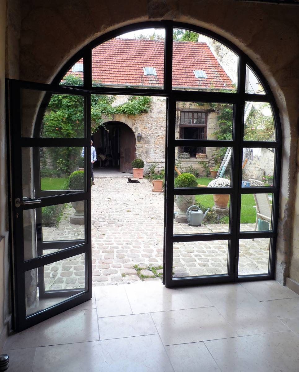 Pour cette réalisation la demande du client était d’avoir une grande ouverture sur son jardin tout en ayant une isolation satisfaisante, cette menuiserie acier correspondait aux attentes du client par sa forme en arc de cercle, sa fabrication résistante, et son vitrage isolant.